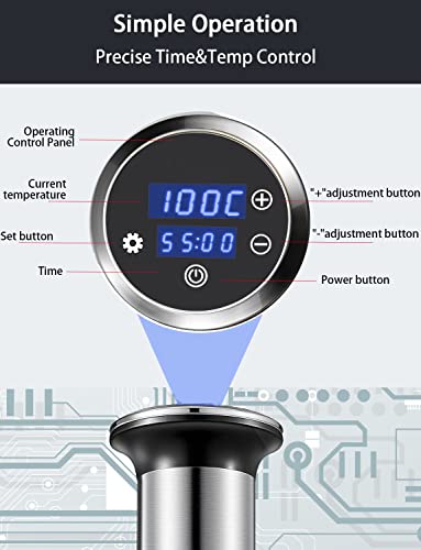 YYNN Sous Vide Garer, Stick circolatore termico a immersione con controllo preciso della temperatura e del tempo, in acciaio inossidabile e interfaccia digitale, con ricettario, temperatura e timer