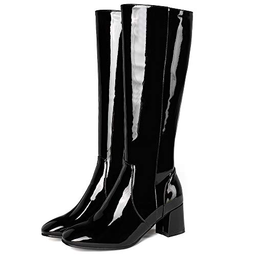Garggi Stivali Alti Donna Tacco A Blocco Square Toe Boots Festa Female Tacco Chunky Boots Side Zip Inverno Boots Nero Numero 43 Asiatico
