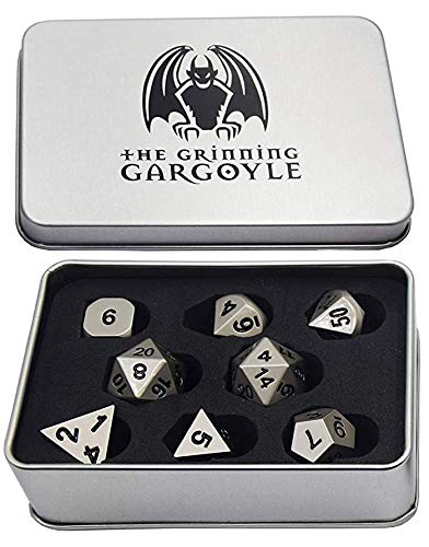 Gargoyle ghignante WCN-3002 - Set di Dadi poliedrico in Metallo 8X Argento Perla - Latta di stoccaggio Logo Color Argento - Include Due Dadi a 20 Facce - Dungeons Rpg Dragons