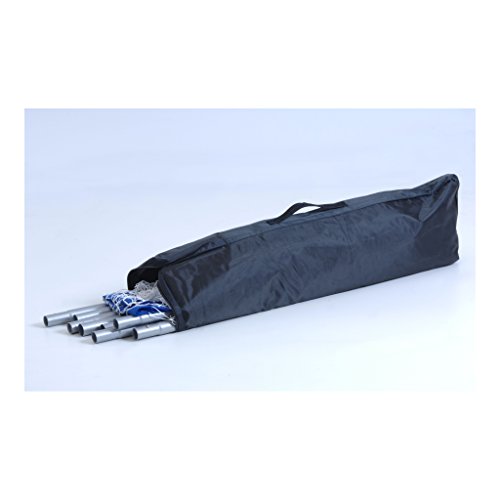 Rete in poliestere per esterno, resistente ai raggi UV con doppio sistema di fissaggio al telaio: mediante corda perimetrale e fascette velcro. Telaio in tubo di acciaio ad alta resistenza Ø 32 mm. Borsa in poliestere con chiusura a cerniera e maniglia per trasporto in colore nero.
