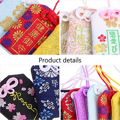Garneck - Amuleto Giapponese Omamori Portafortuna, Confezione da 10 Pezzi, per benedire la Salute, la Fortuna, la ricchezza (Colori Assortiti)