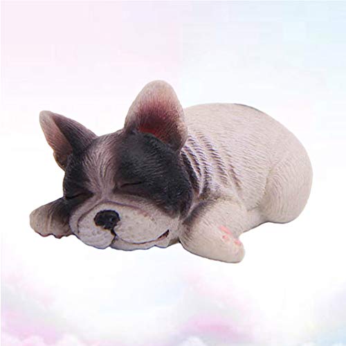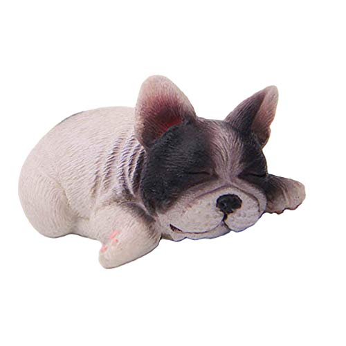 Garneck Bulldog Francese Statua in Resina inginocchiata sdraiata Cane Addormentato Statua Scultura Giocattolo Animale Artigianato scrivania Decorazione per casa Auto Telefono (Colore Carne)