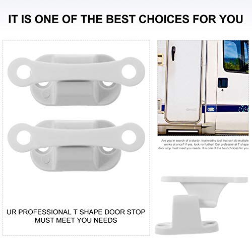 Garneck - Set di 2 fermaporta a forma di T, in plastica bianca, per camper, camper, roulotte, camper, 2 pezzi