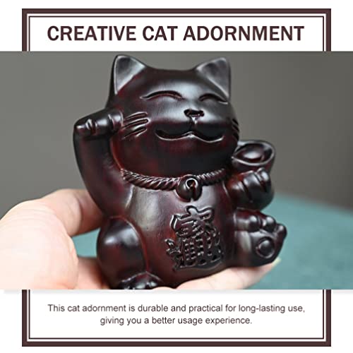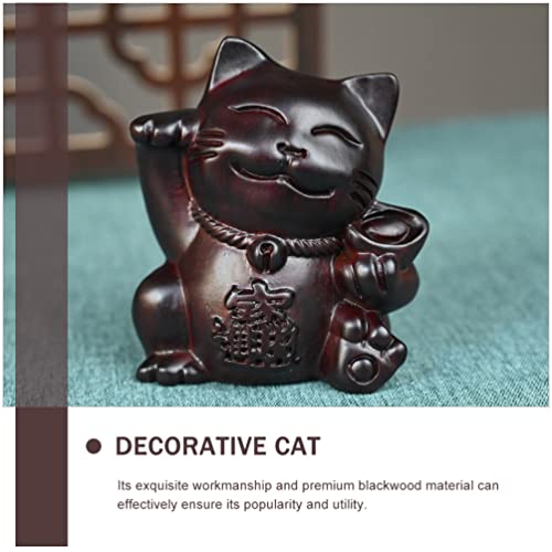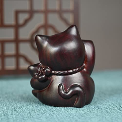 Garneck Maneki Neko - Statuetta giapponese con gatto fortunato, in legno di nero, per la casa