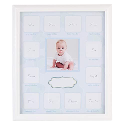 Garneck Primo Anno Foto Momenti 12 Mesi Baby Keepsake Frame Crescita Record Cornice per Foto in Attesa Genitore Regalo di Natale Blu