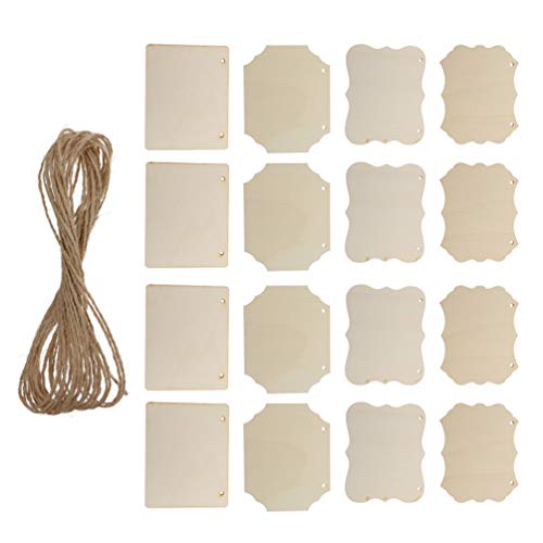 Garneck - Targa in Legno da Appendere, con Corda, in Legno incompiuto, 18 Pezzi, per Decorazioni Fai da Te