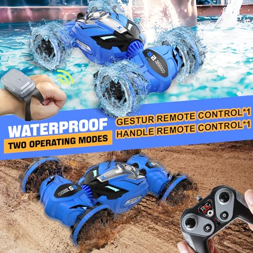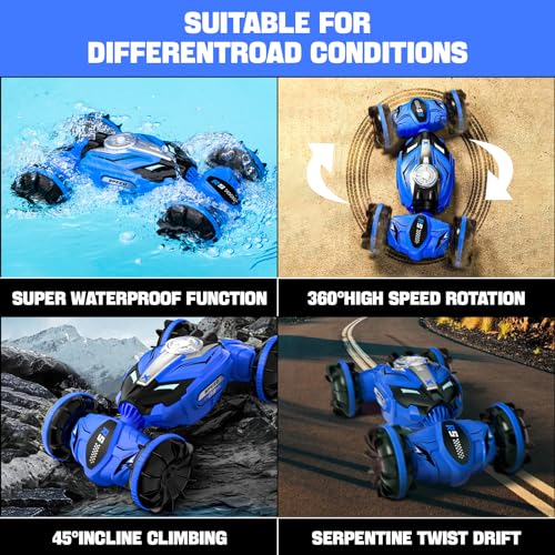 GARNHLOB Macchina Telecomandata Per Bambini 2,4 GHz 4WD RC Auto Telecomando 360° Rotazione Acrobatica Stunt Car Veicolo Anfibio Con Telecomando 3 Batteria 75 minuti per 6 7 8 9 10 11 12 anni