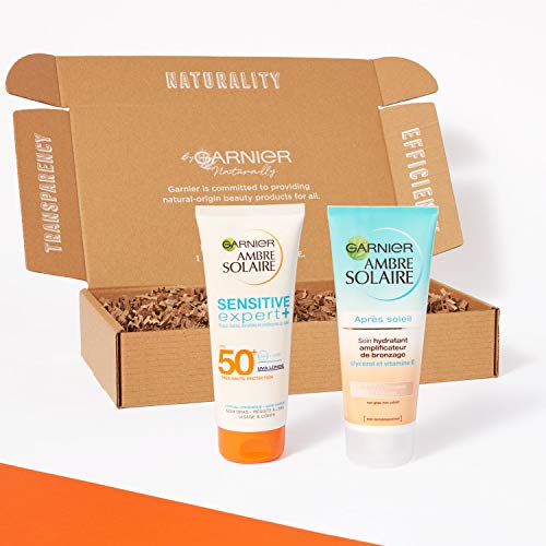 Garnier Ambra Solar - Cofanetto protezione solare completo - Latte protettivo SPF 50+ e cura idratante dopo il sole, 200 ml