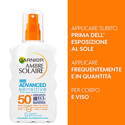 Garnier Ambre Solaire Spray Protettivo IP 50+ Advanced Sensitive, Protezione Molto Alta, 200 ml