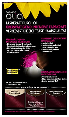 Garnier, Olia, colore per capelli/tinta per capelli, contiene 60% olio floreali per un colore intenso fino a 8 settimane, senza Ammoniaca, 3 x 1 pezzi