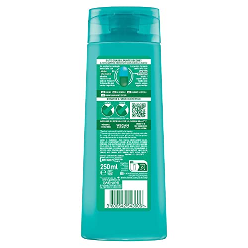Garnier Fructis Shampoo Purificante, Per Capelli Cute Grassa e Punte Secche, Azione Seboregolatrice, Con Estratto di Acqua di Cocco e Acido Salicilico, Pure Non-Stop Cocconato Water, 250 ml