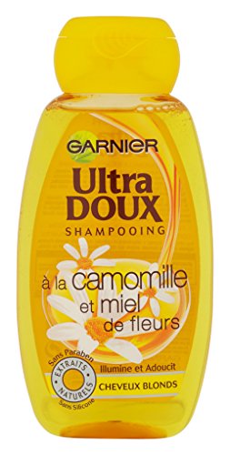 Vera ricetta di luce per i capelli biondi, lo shampoo Garnier Ultra Morbido combina la camomilla riconosciuta per le sue proprieta éclaircissantes e ammorbidente al miele di fiori famoso per le sue virtù nourrissantes in una consistenza dolce e leggera che non appesantisce I capelli.