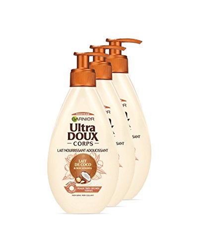 Garnier Ultra Morbido Corpo Latte Nutriente Ammorbidente latte di cocco/Macadamia Pelli Molto Secche A Ternes 250 ml - Set di 3