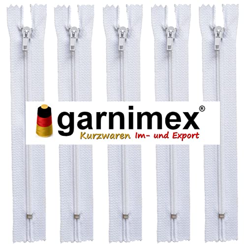 Garnimex - Chiusura Lampo, 50 cm x 5 Pezzi, Colore 01 Bianco, Non divisibile