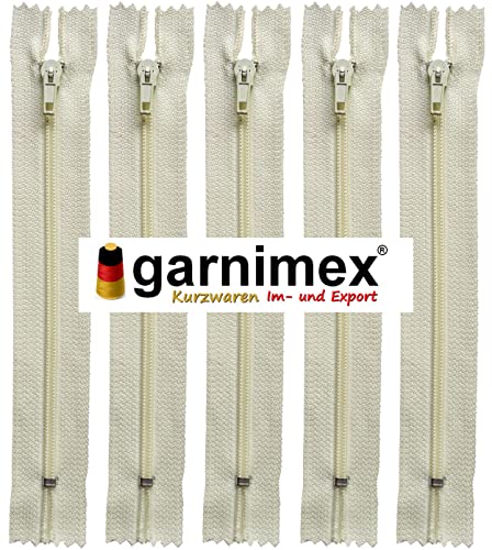 Garnimex - Chiusura Lampo, 40 cm x 5 Pezzi, Colore 02, Panna, Non divisibile