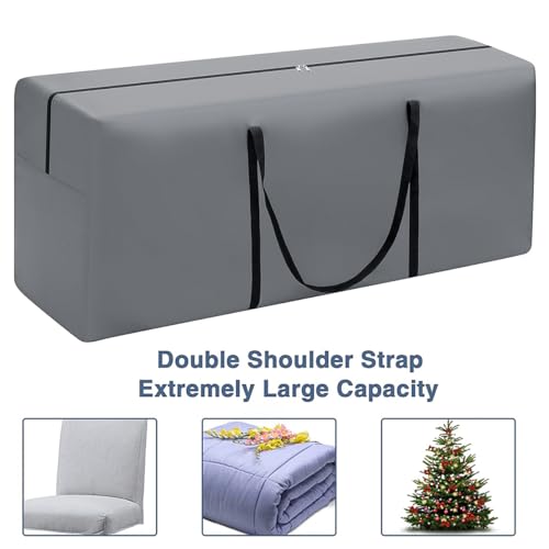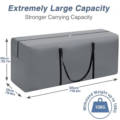 GARPROVM Borsa per cuscini da giardino, Custodia per tappezzeria cuscino sedile, Borsa portaoggetti da 200L per albero di Natale Tessuto Oxford impermeabile antistrappo, 125x32x50 cm