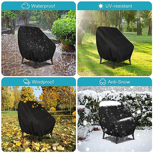 Materiale impermeabile e ispessito: la copertura per poltrona da giardino è realizzata in tessuto Oxford 420D con rivestimento impermeabile e sotto-rivestimento impermeabile, che lo rende un telo impermeabile per mobili da giardino come sedie da giardino, sedie impilabili, sedie da terrazzo.