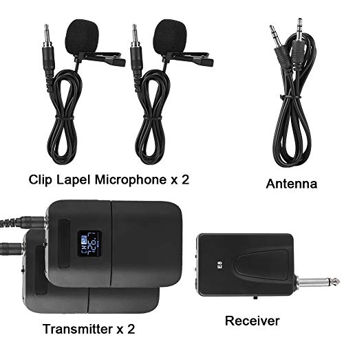 Garsent Microfono Lavalier Microphone Wireless, microfono risvolto wireless VHF con ricevitore trasmettitore portatile per interviste, podcast e registrazione