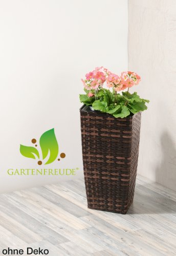 Gartenfreude Secchio per pianta da Giardino in polyrattan, incl. Sistema per innaffio per Interno ed Esterno, Marrone Bicolore, 26,5 x 26,5 x 50 cm