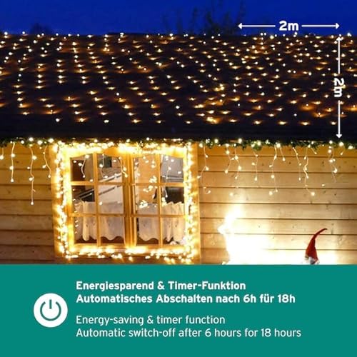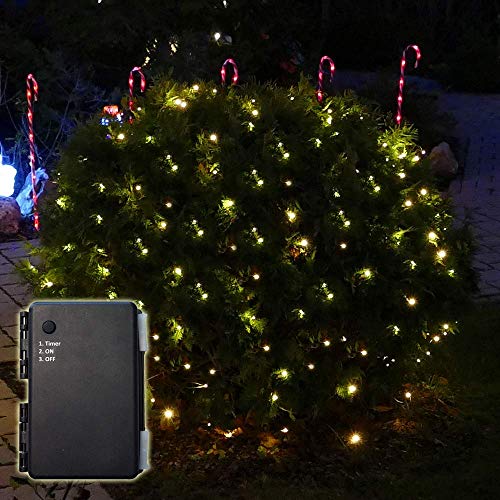 GARTENPIRAT Rete alimentata a batteria con luci 2 x 2 m con 200 LED bianco caldo e timer per esterno