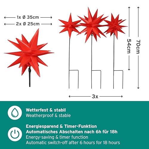 Gartenpirat set 3 pali stelle rosse 18 punte luce LED Timer