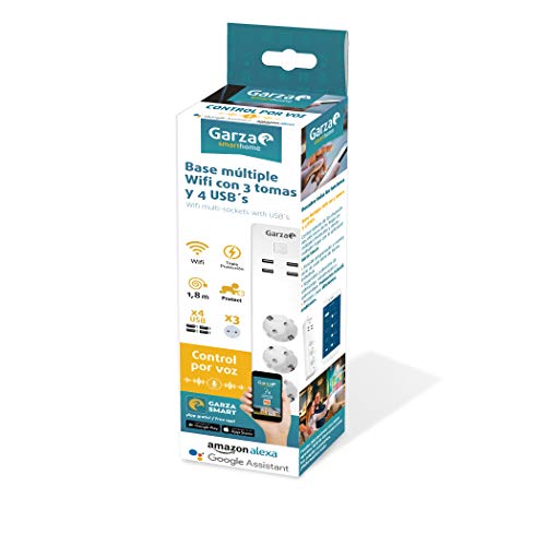 Garza SmartHome - Multipresa spina multiple intelligente Wi-Fi Compatibile con Alexa E Google home. Multipresa per controllo remoto programmabile con 4 USB. Compatibile con iOS E Android.