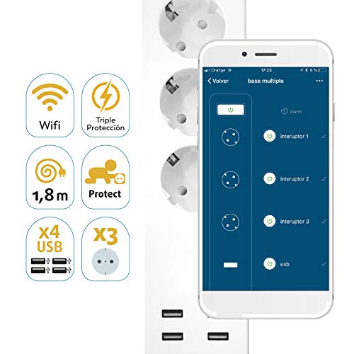 Multipresa prese molteplici Wi-Fi con 3 prese schucko E 4 prese USB per on, Off, programmato E conto alla rovescia dispositivi di alimentazione fino a 3.680 W, Sia dal App (Android, iOS) Come per Assistente vocale (Alexa, Google home). SI possono maneggiare LE varie prese di Forma individuale E indipendente. di Molto Facile E intuitivo installazione E uso, SI collega direttamente alla Wi-Fi del casa senza necessità di passerella O Hub, E permette di Fare domótico E intelligente qualsiasi dispositivo meccanico Che si possa collegare A Lui, Come lampade, riscaldanti, umidificatori, Radio, ecc. già Sia di Forma manuale, O con tante programmazione Come necessiti.