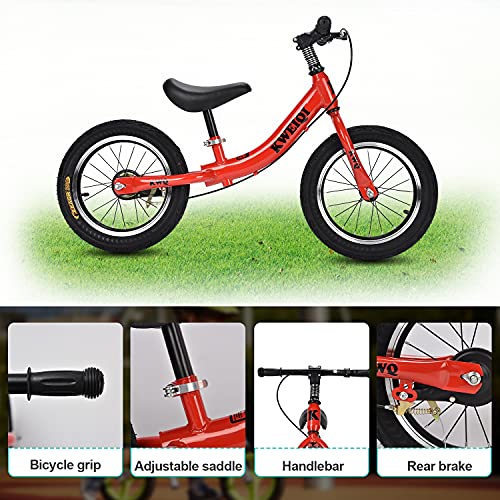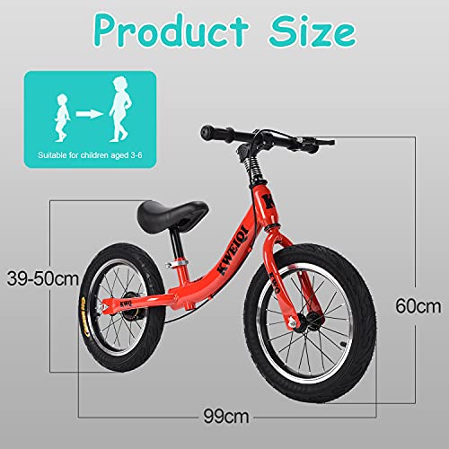 GASLIKE Bicicletta Senza Pedali per Bambini 3-7 Anni, 14" Bici Equilibrio con Manubrio E Sellino Regolabili, Bici Senza Pedali Balance Bike con Freno E Ruota Gomma Gonfiabile, Max 50 kg,Rosso