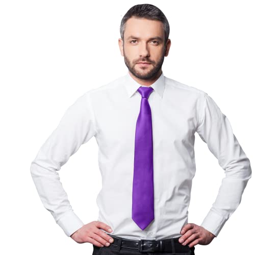GASSANI Cravatta uomo stretta | eleganti stretti Cravatte monocolore 8cm a righe | con strisce fini | Lilla Bluastro