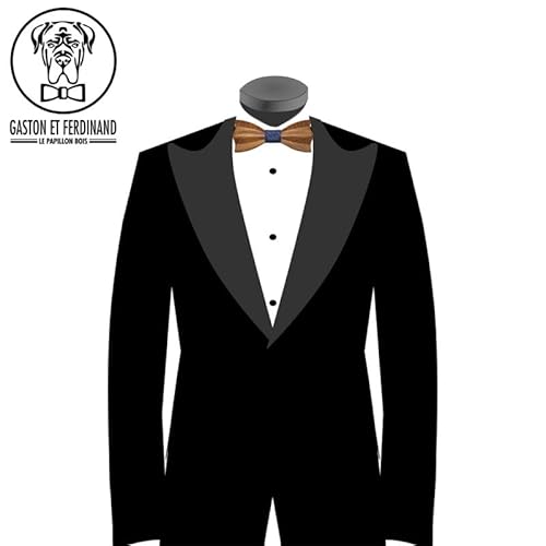 GASTON ET FERDINAND - Papillon in Legno Scuro Scelta del Tessuto Forma del 3D Originale Fatto a Mano Artigianale - One size, N06