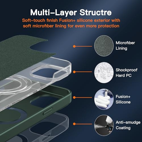 Gatatol Cover per iPhone 15, [Compatibile con MagSafe] Fusion+ Silicone Anti-Graffio Liquido & Slim Custodia, Resistente a Shock e Cadute, Cavalletto Incorporato per iPhone 15 (Verde) 2023