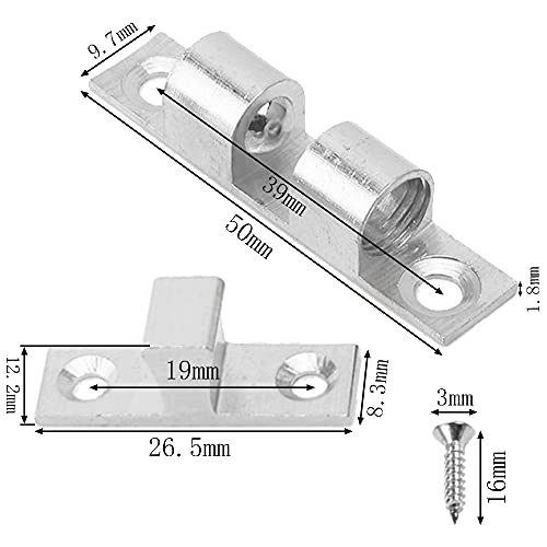 La confezione contiene 8 chiavistello e 32 viti. La serratura a rullo regolabile in tensione con molla può essere utilizzata per le ante dei mobili.