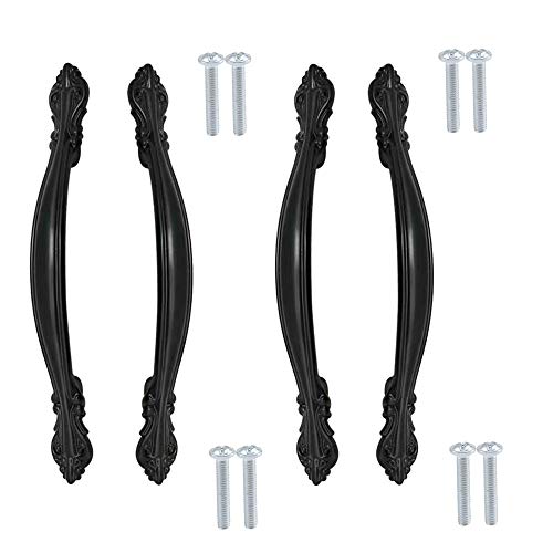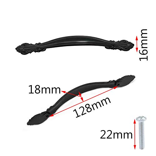 Gativs 4 Pezzi Maniglioni per Armadio Pomelli per Mobili Maniglia Nera Dell'armadio Lega Zinco Maniglie Armadio Maniglie Cassetti Maniglione per Porta,Distanza Tra fori 128mm