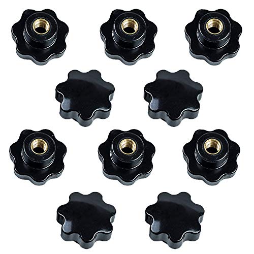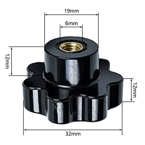 Gativs 10 Pezzi Vite a Testa a Stella Filettatura Femmina Manopola di Bloccaggio Manopola di Serraggio Femmina Nera Bottone Testa Serraggio Dadi in Plastica M6 x 32mm per Macchine Utensili