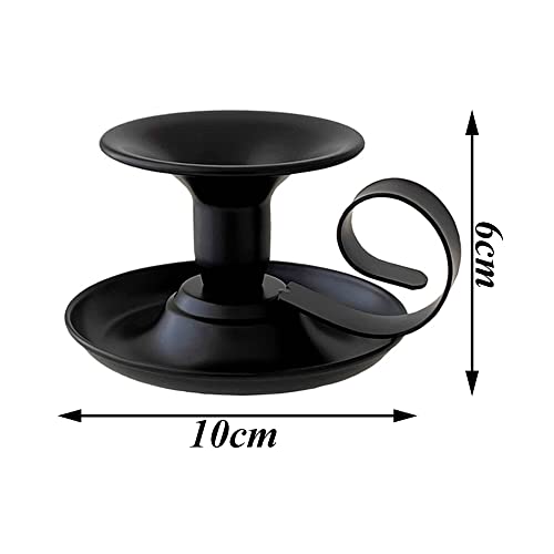Gativs Porta Candele Lunghe 2 Pezzi Lungo Portacandele con Maniglia e Vassoio Portacandele Conico Vintage in Ferro Battuto Conico Vintage Battuto Lungo Portacandele Lume di Candela in Ferro Battuto