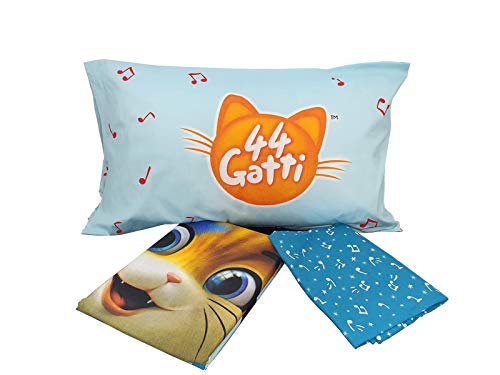 44 Gatti Completo Letto 1 Piazza Lampo, 100% Cotone, Bianco e Azzurro