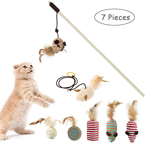 Gatti Giocattoli Interattivi, 7 Pezzi Giocattolo Interattivo Gatti, Cat Interactive Wand Toy, Set di Giocattoli per Gatti, per Giocattoli Interattivi Animali Domestici Gatti All'Interno e All'Esterno