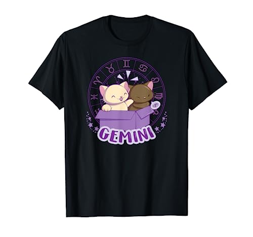 Gatti Kawaii Astrologia Zodiaco Gemelli Maglietta