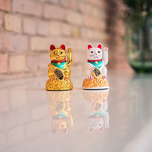 Set di 2 Gatti Che Salutano - Maneki-Neko Gatto Porta-Fortuna Che si Muove - Statuetta da Ufficio - Oggetti Simpatici - Idea Regalo Addio Collega (Set di 2#2)