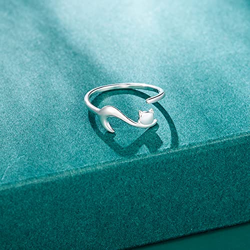 Gatto Anello 925 Argento Carino KItty Regolabile Aperto Anello Regali di compleanno per Donne Ragazze Adolescenti