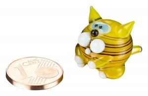 Con occhi di gatto - Statuina miniatura in vetro con strisce e pulsante blu gialla