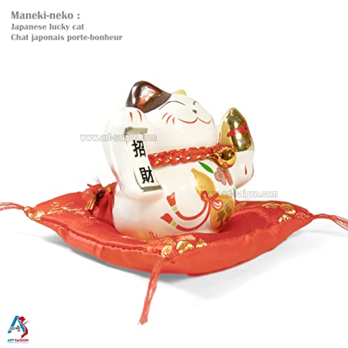 ✅【DESCRIZIONE】 Questo simpatico modello di Maneki Neko è di colore bianco, simbolo di felicità. È realizzato in porcellana di alta qualità di produzione cinese. Inoltre, è decorato con un cuscino di seta rossa. Come la maggior parte delle statuette di Maneki Neko, funge anche da salvadanaio. Questo gatto giapponese portafortuna è molto carino e bello, con belle finiture