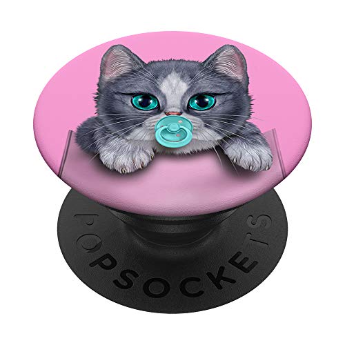 Gatto grigio bicolore con ciuccio in tasca PopSockets PopGrip: Impugnatura per Telefoni Cellulari e Tablet Intercambiabile