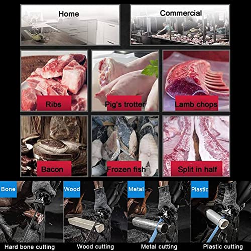 【AMPIA APPLICAZIONE】 Il tagliaossa elettrico professionale è adatto per cucina, macello e tutti i tipi di lavorazione della carne. Può essere utilizzato per tagliare legno, met