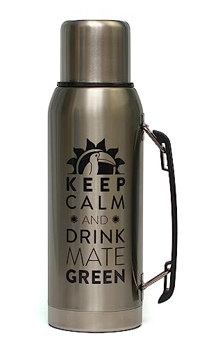 Il thermos solido e durevole in acciaio inox 18/8 vi servirà per molti anni. Viene fornito con un coperchio della tazza, un imbuto speciale per tè mate, e una comoda maniglia mobile.