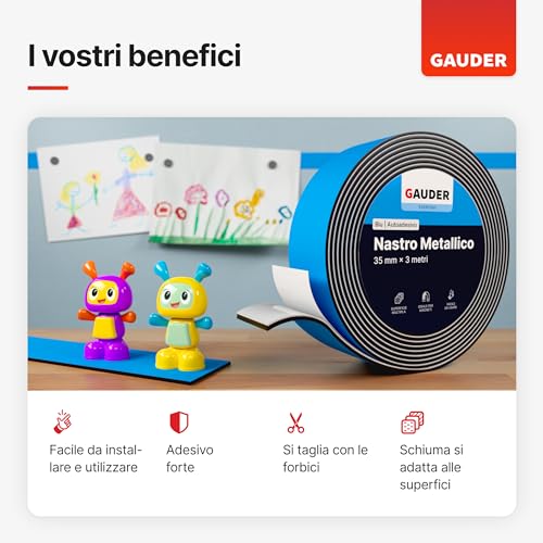 GAUDER Nastro metallico autoadesivo blu per magneti I Ideale per figure e scaffali Tonies® I Nastro ferroso I Nastro metallico (1 m)