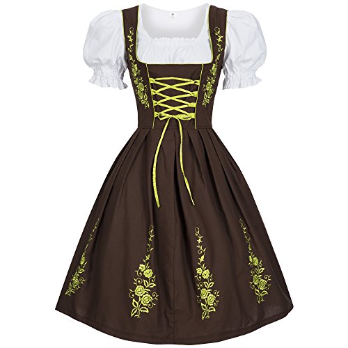 Gaudi-Leathers Bavarese Dirndl Set Marrone con Verde 3 Pezzi Costume Tipico Tirolese per Oktoberfest Carnevale Donna 44