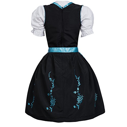 Gaudi-Leathers Bavarese Dirndl Set nerro con Azzurro Ricamo 4 Pezzi Costume Tipico Tirolese per Oktoberfest con Catena Carnevale Donna