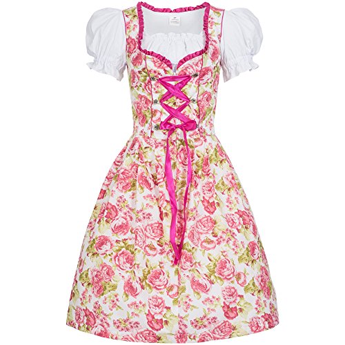 Una linea di 3 pezzi Mimi con stampa floreale in rosa e abito, camicetta tradizionale breve e dirndl grembiule.