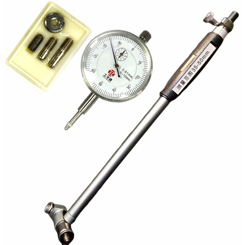 Il calibro a quadrante ha una precisione di 0,01 mm, facile da misurare. Viene utilizzato per misurare le dimensioni interne dei pezzi da lavorare con un metodo comparativo. Specifiche: Materiale: Metallo Tipo: 18-35 mm / 0,71-1,38 pollici, 35-50 mm / 1,38-1,97 pollici, 50-160 mm / 1,97-6,3 pollici (opzionale) Pacchetto Peso: 18-35 mm: 600 g/21,16 once 35-50 mm: 800 g/28,22 once 50-160 mm: 850 g / 29,98 once Formato della confezione: 18-35 mm: 270 * 145 * 45 mm/10,63 * 5,71 * 1,77 pollici 35-50 mm: 320 * 145 * 50 mm/12,6 * 5,71 * 1,97 pollici 50-160 mm: 320 * 160 * 50 mm / 12,6 * 6,3 * 1,97 pollici Lista di imballaggio: 1 * Indicatori a quadrante 1 * Asta di prolunga 1 * Set di testine di misurazione 1 * Scatola